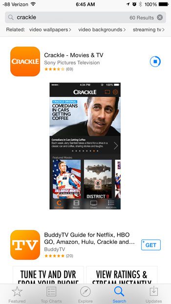 CrackleにはiPhoneアプリもあり、これを無料でダウンロードしてiPhoneにインストールできます。