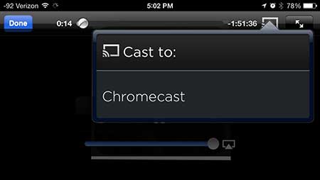 ステップ6:選択しますChromecastオプションは、映画がChromecastに転送され、テレビで演奏を開始するため、数秒待ちます。