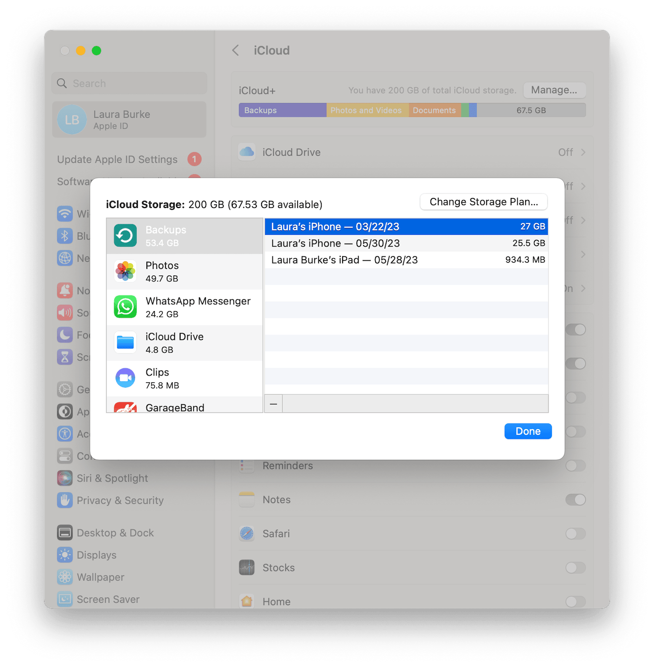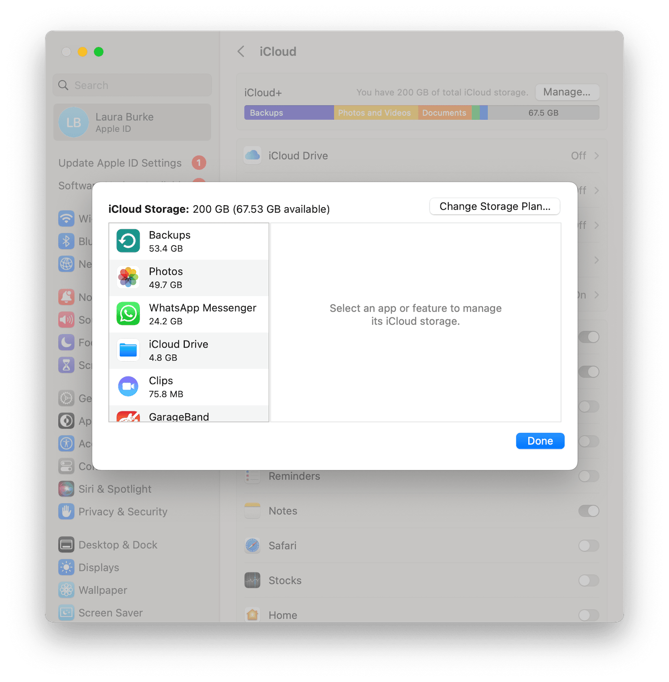 Macのシステム設定で、iCloudストレージの概要にもう一度移動します。