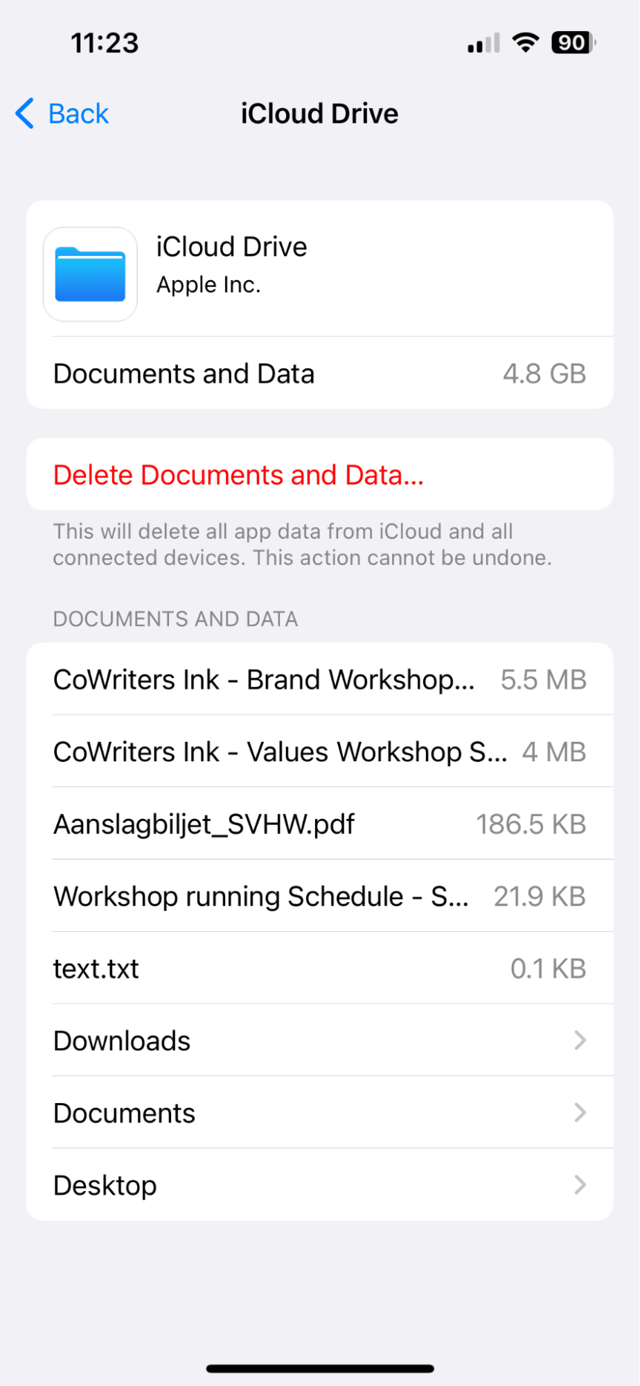 iCloudドライブは、Apple Stockpiles Documents、Applicationフォルダー、PDFSです。それを掃除するとスペースを節約できます。方法は次のとおりです。