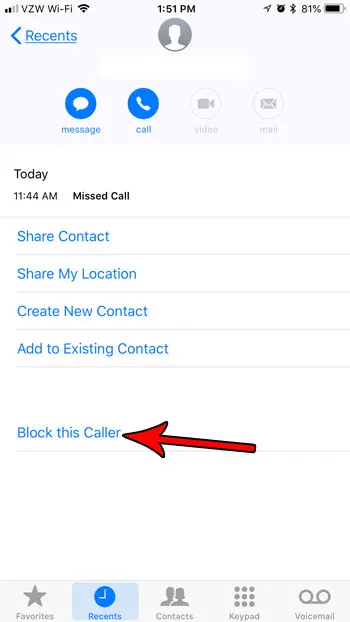 ステップ4:選択しますこの発信者をブロックしますメニューの下部にあるボタン。