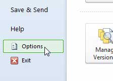 ステップ3:クリックしますオプション窓の左側にある列の下部に。
