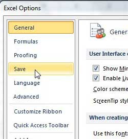 ステップ4:クリックします保存の左側の列のオプションExcelオプションウィンドウ。