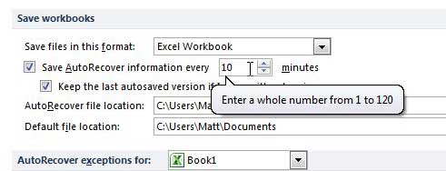Excel 2010で自動回転周波数を増やす方法がわかったので、コンピューターがより頻繁にワークブックファイルを保存していることを確認できます。