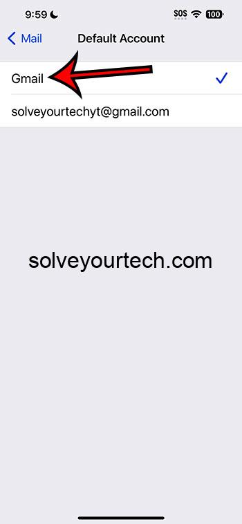 このステップにより、iPhoneに追加したすべてのメールアカウントのリストに導かれます。デフォルトとして設定するアカウントを選択できるのはここにあります。