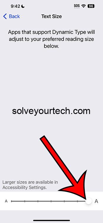 スライダーをドラッグすると、テキストサイズがどのように見えるかのプレビューが表示されるため、自分に合ったものに応じて調整できます。