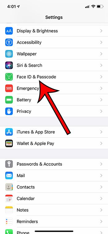 ステップ2:下にスクロールして選択しますFace ID&PassCodeオプション。