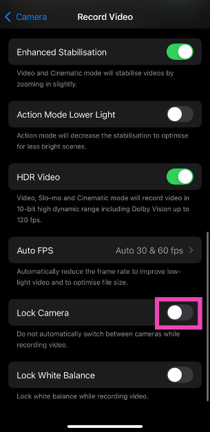 ステップ3:次のトグルスイッチをオンにしますカメラをロックします。