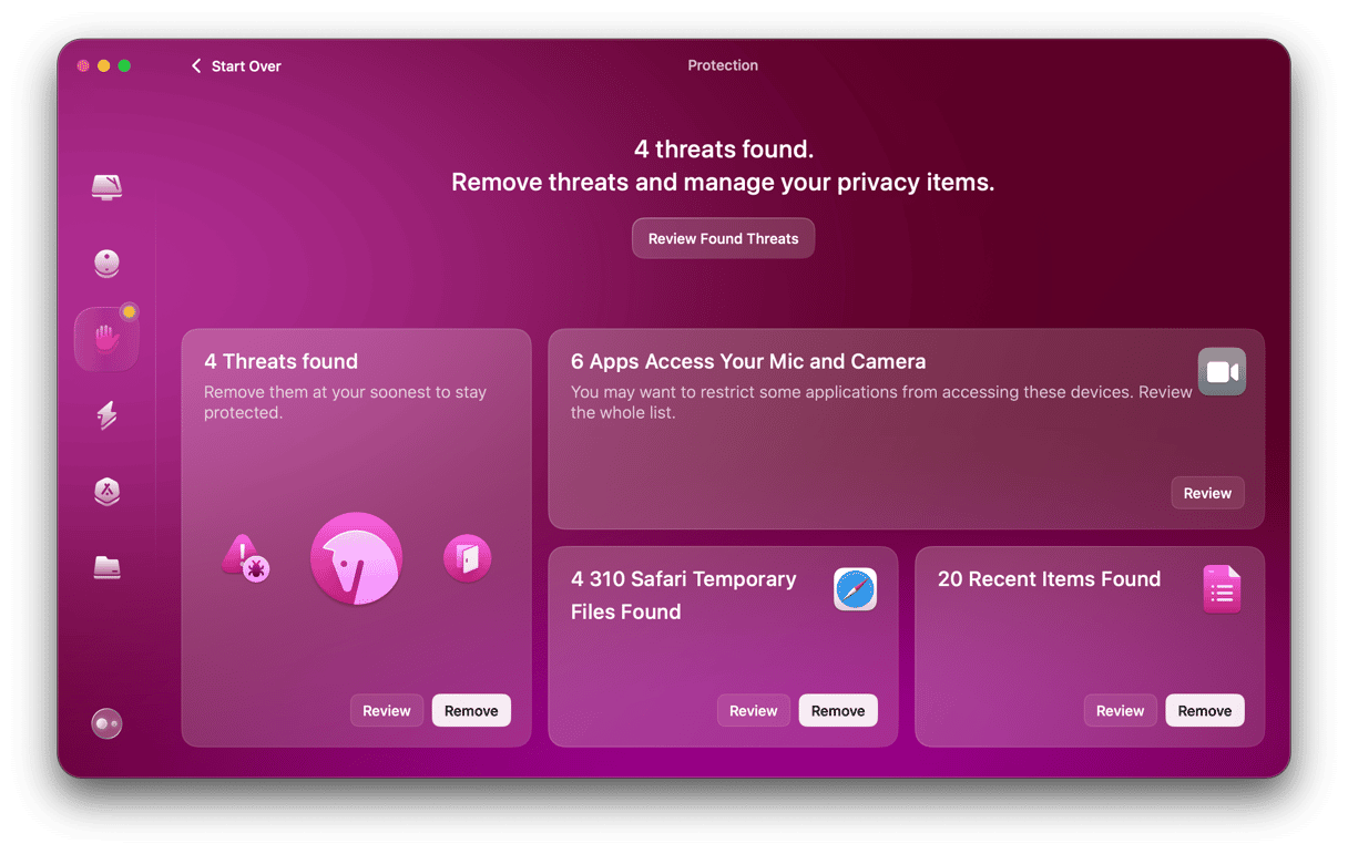 CleanMymacの保護は、システムの詳細なスキャンを実行し、最新かつ最も洗練された脅威を探しています。 CleanMymacは、高度なサイバーセキュリティテクノロジーを利用して、マルウェアを見つけて削除する前に削除します。