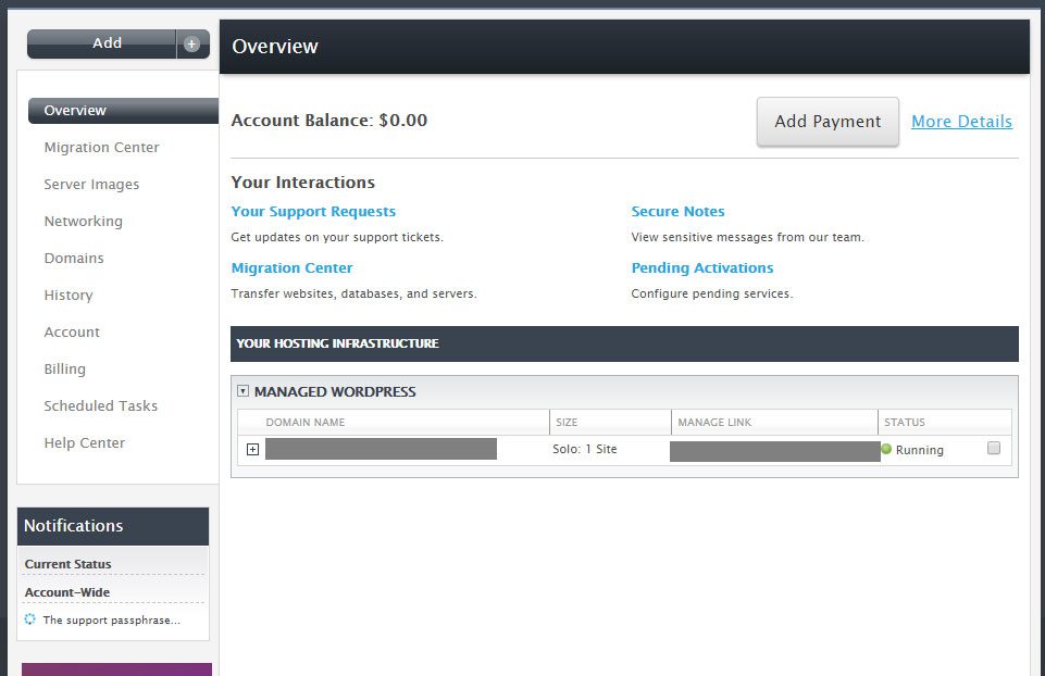 上記の写真の管理されたWordPressセクションのドメイン名をクリックすると、管理されたWordPressアカウント画面に表示されます。