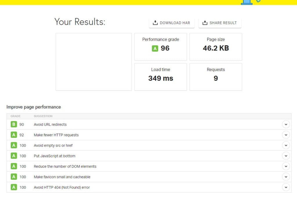 その画像からわかるように、このサイトはかなり高速です。おそらく近い将来にそうすることになるにもかかわらず、この速度テストにはCloudFlareを使用していないことに注意してください。これは、サイト速度がさらに大幅に向上することを意味します。