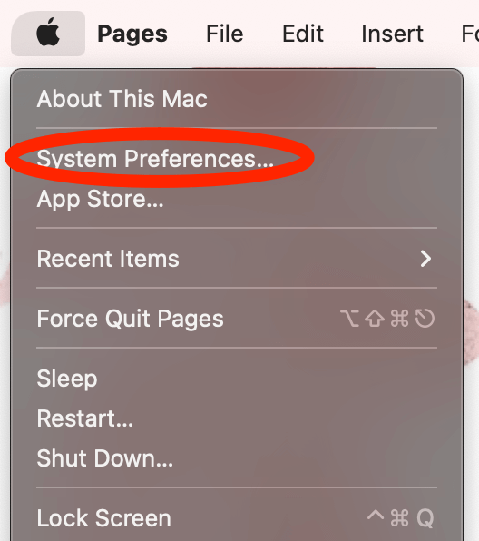 クリックAppleアイコンで左上画面の。それから、[システム設定]をクリックします
