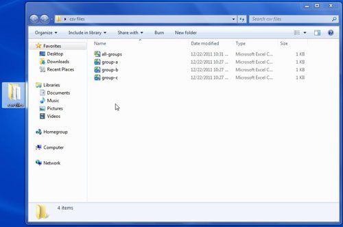 - タイプコピー *.csv all-groups.csv、次に押します入力。