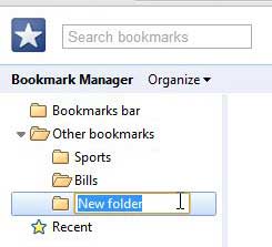 これにより、新しいフォルダーが追加されます他のブックマーク、そしてその名前を入力できます。ブックマークのリストをご覧になり、表示されているブックマークのいくつかのカテゴリを選択してください。理想的には、表示されるブックマークの種類ごとにフォルダーを作成する必要があります。ただし、あまりにも多くのフォルダーを使用したくないので、曖昧にしてみてください。特定のブックマークを見つけるのが難しくなる可能性があります。