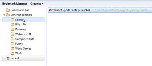 すべてのブックマークを独自の場所に置くまで、このステップを繰り返します。フォルダーに属していないブックマークを見つけた場合は、別のフォルダーを作成します。あまりにも多くのフォルダーを作成している場合は、フォルダーを組み合わせてサブフォルダーを作成します。あなたは持っていますかフットボール、野球、バスケットボール、 そしてホッケーフォルダ?たぶんあなたはただ必要ですスポーツフォルダー、そのフォルダー内の各スポーツのサブフォルダーを持つことができます。