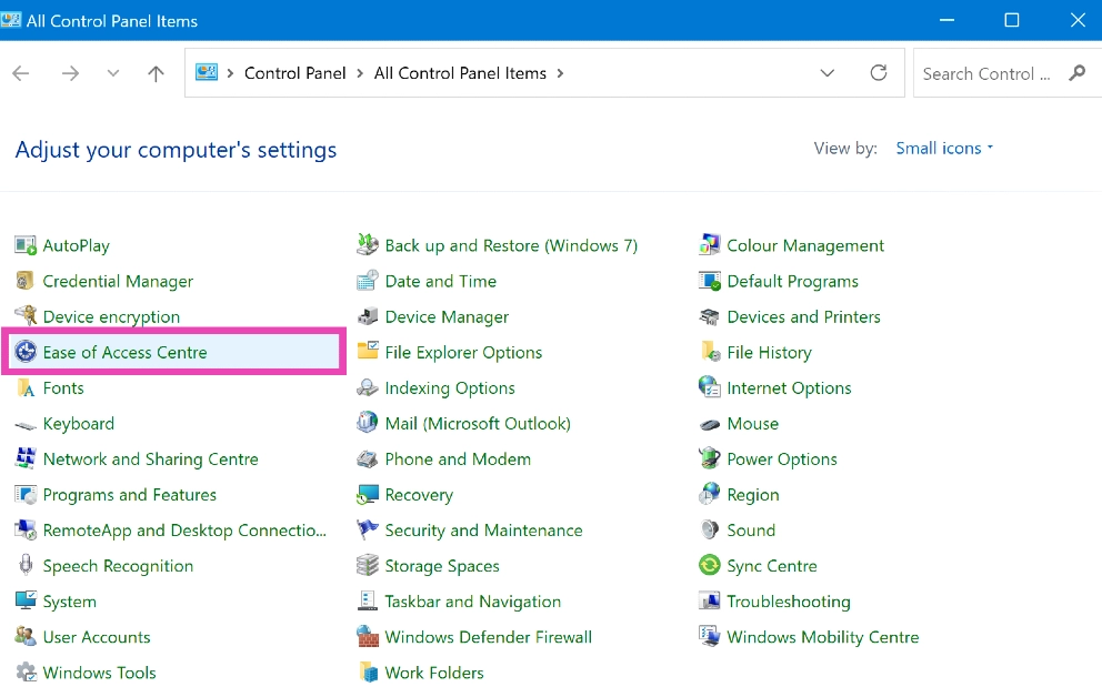 ステップ1:開けるコントロールパネル選択しますアクセスの容易さ。