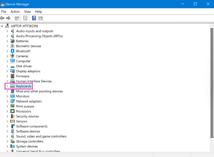 ステップ2:クリックしてくださいキーボードセクションを展開します。