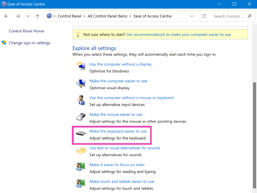 ステップ2:クリックしてくださいキーボードを使いやすくします。