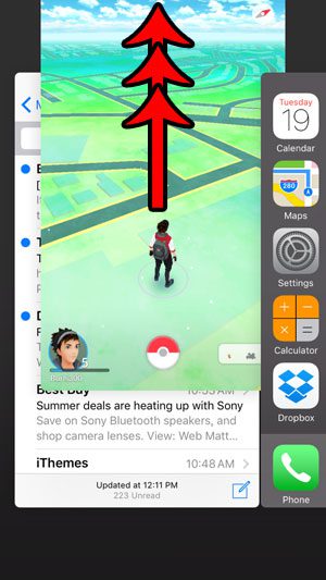 ステップ1:画面の下にホームボタンをダブルタップしてアプリスイッチャーを開き、ポケモンゴーアプリをスクリーンの上部に向かってスワイプして閉じます。その後、を押すことができます家もう一度ボタンにして、このビューを終了します。
