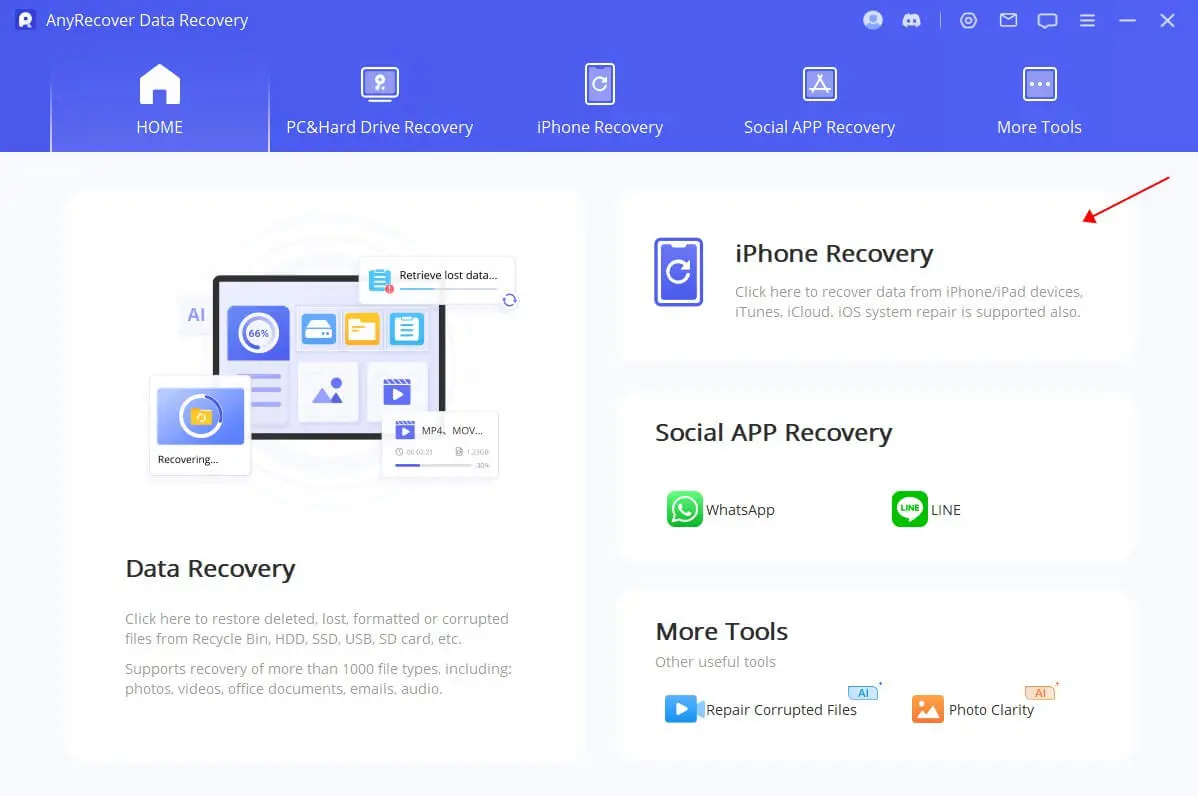 AnyRecoverは、バックアップを必要とせずに削除されたテキストメッセージを回復するのに役立つ強力なツールです。 iPhoneからのデータの回復をサポートし、iCloudおよびiTunesのバックアップからサポートします。
