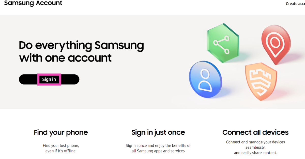 ステップ1:に行きますSamsungアカウントダッシュボードクリックしてくださいサインイン。