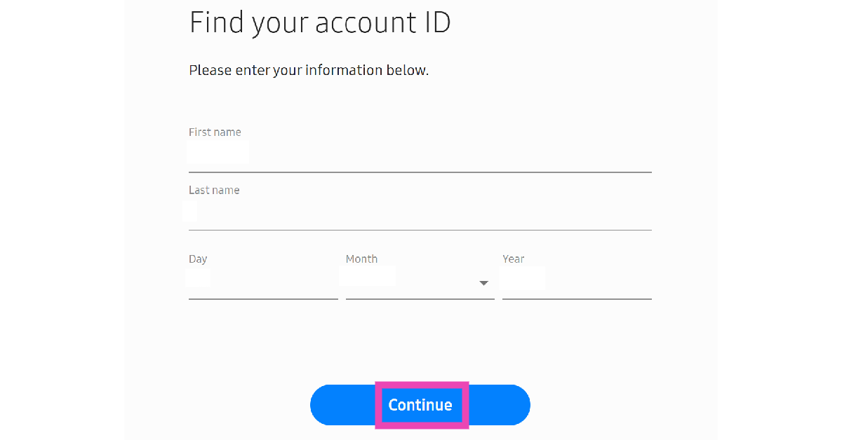 ステップ3:名、姓、生年月日を入力してください。打つ続く。