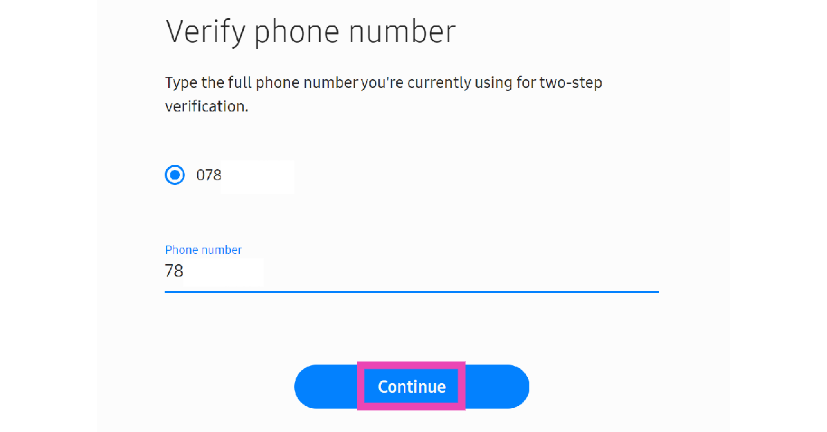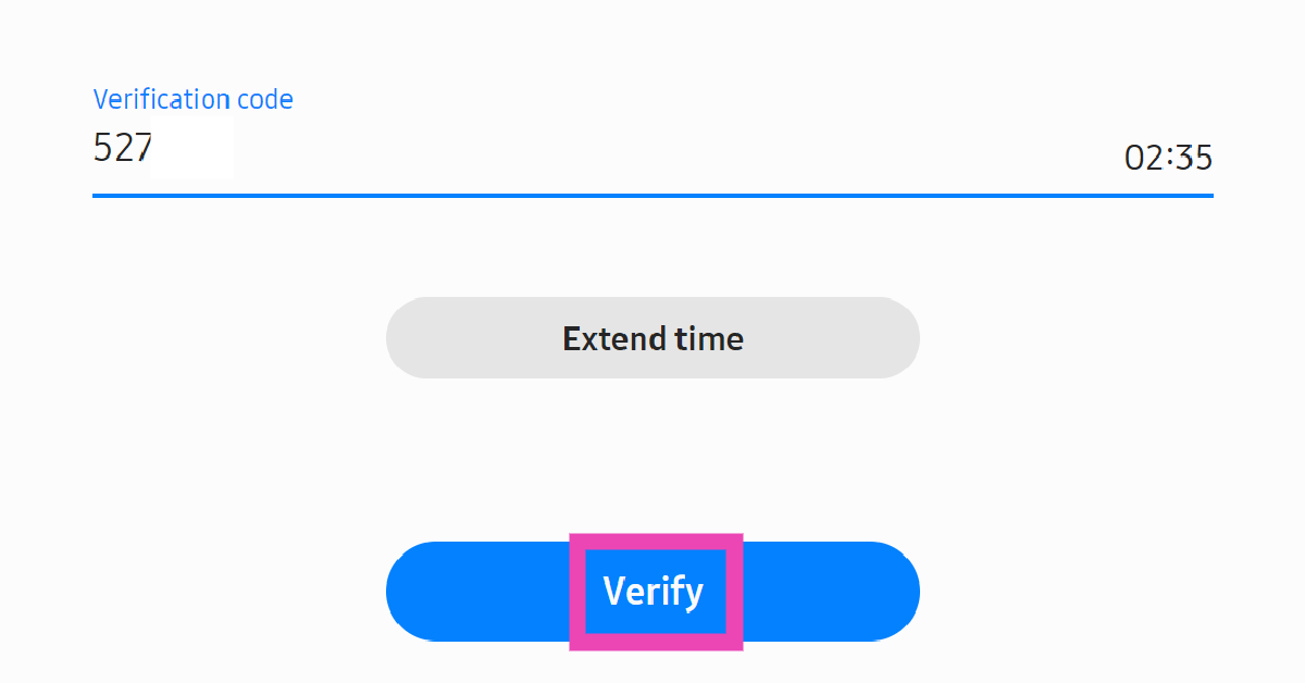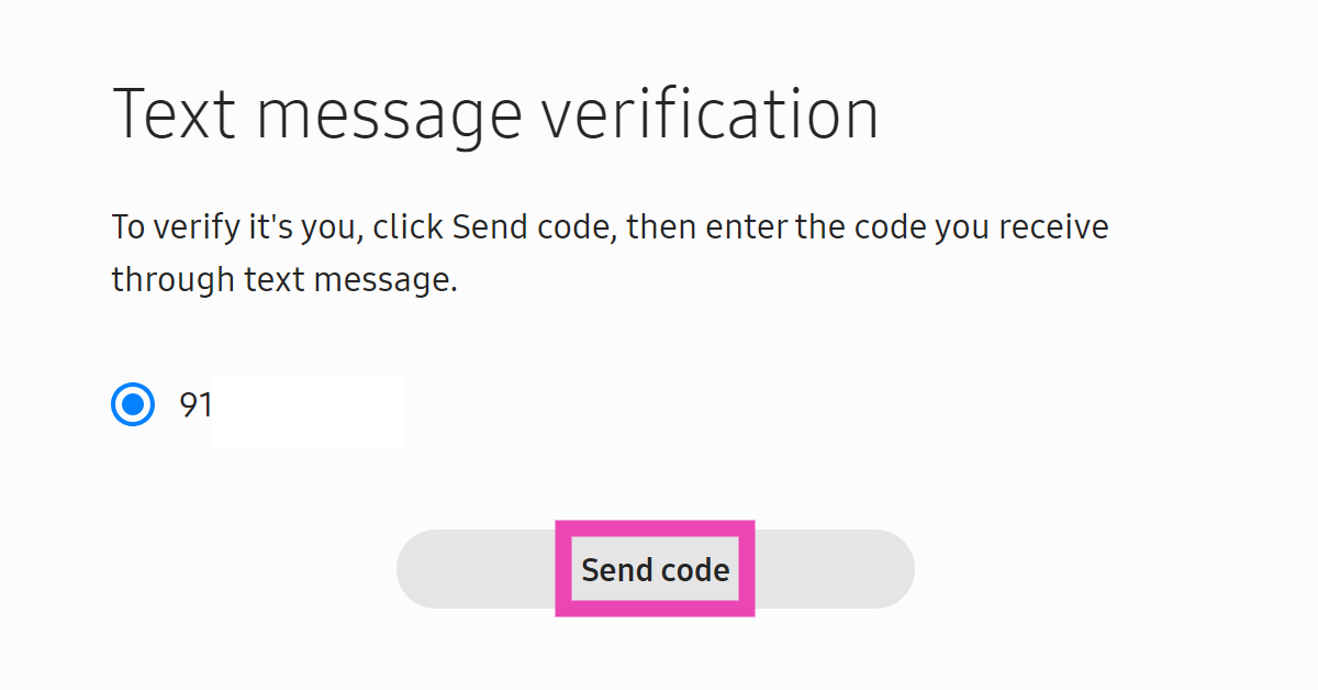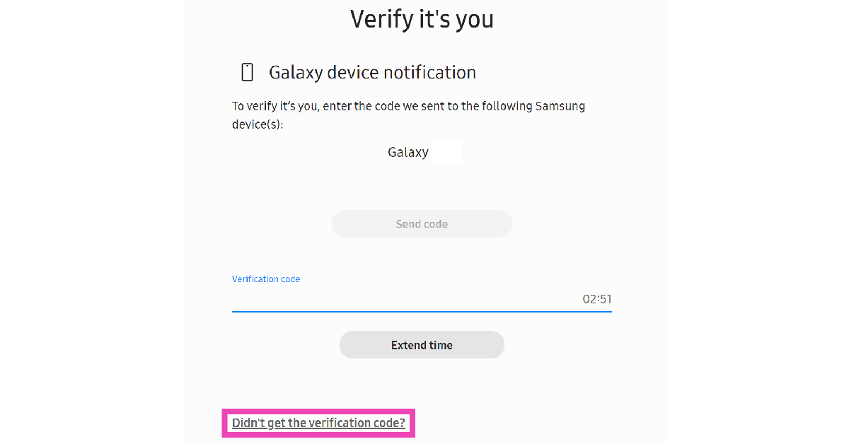 ステップ7:a検証コードSamsungデバイスに送信されます。デバイスを使用しなくなった場合は、クリックしてください。確認コードを取得しませんでしたか?'
