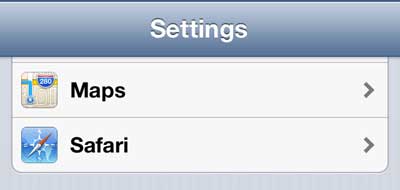ステップ2:下にスクロールしますサファリオプションとそれを選択します。