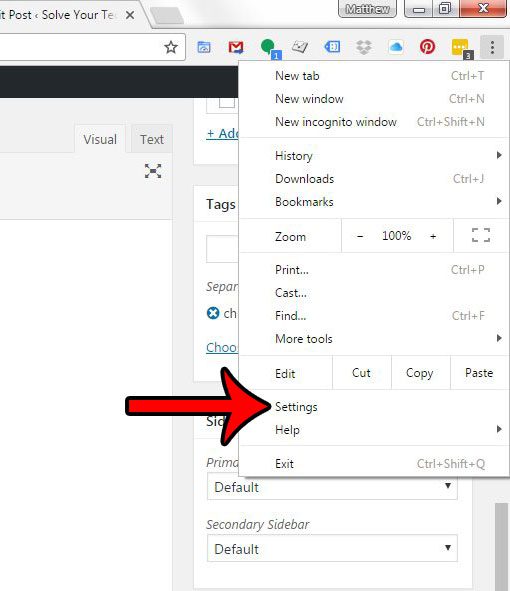 これを行うには、クロムブラウザのウィンドウの右上の角にある3つのドットをクリックしてから選択してから選択します設定。