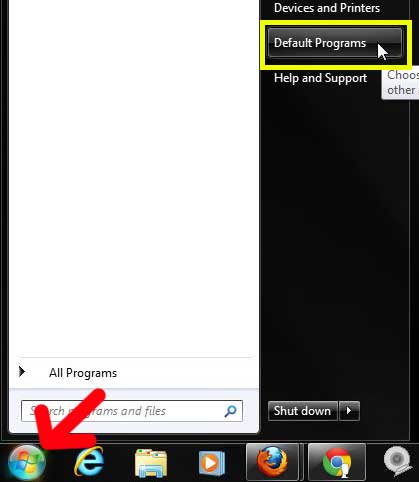 ステップ1:クリックします始める画面の左下隅にあるボタン、[デフォルトプログラムメニューの右側の列のオプション。