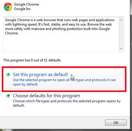 ガイドは、これらの手順の写真を含むデフォルトのWindows 7 WebブラウザーとしてGoogle Chromeの設定に関する追加情報を以下に続けます。
