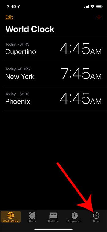 ステップ2:画面の下部にある「タイマー」タブをタッチします。