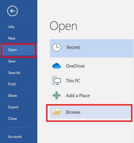 PDFファイルを開きます:「」をクリックします。ファイル」単語の左上隅で、「」を選択します。開く>閲覧」