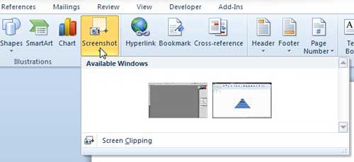 しかし、Word 2010には実際には、プログラム内から直接スクリーンショットを撮ることができるユーティリティがあり、それにより、プロセスを雑用にすることができるすべての追加手順を無効にします。