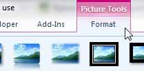 Word 2010は挿入されたスクリーンショットを画像として扱うので、画像ツールウィンドウの上部にあるタブで、画像にさまざまな変更を適用します。