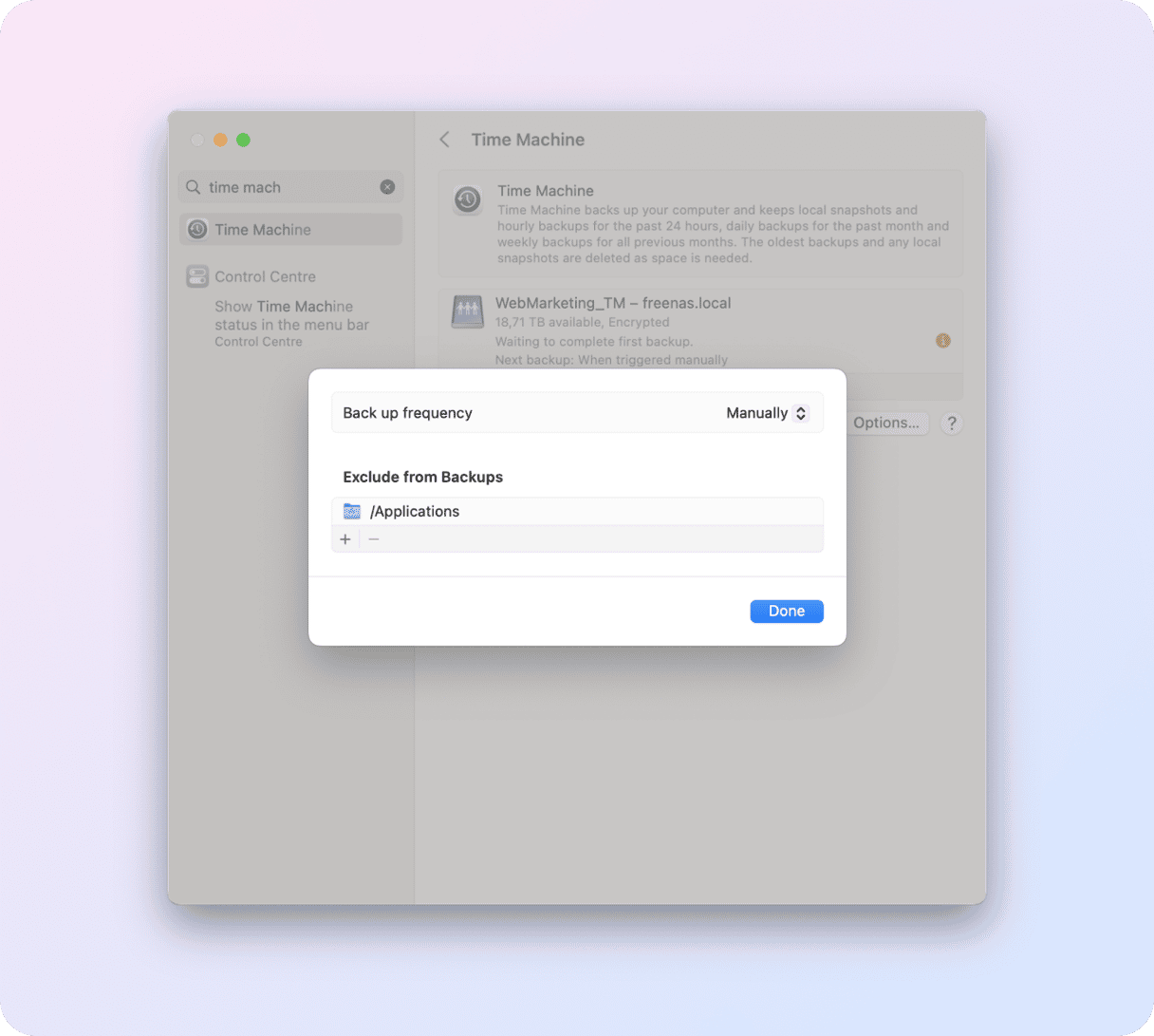 これで、バックアップキューからアイテムを除外できます。たとえば、アプリケーションフォルダーを考えてください。おそらく、とにかくそれらを取得できるので、それらを除外すると貴重なスペースを節約することができます。