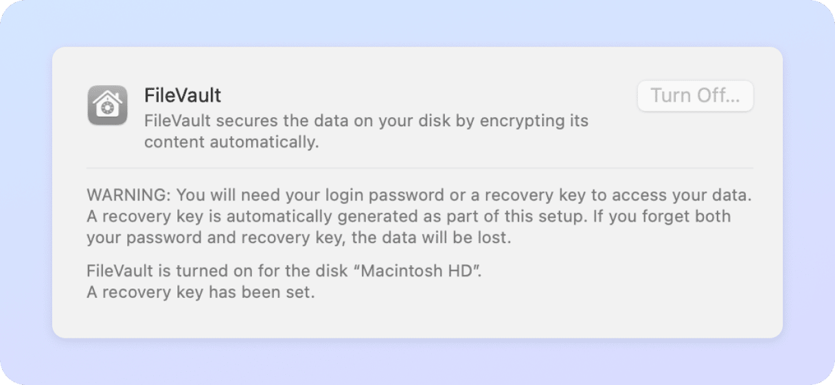 FileVaultは、セキュリティを大幅に強化するディスク暗号化機能です。しかし、スペースを求められている場合、トレードオフは避けられません。実際、FileVaultはMac上のすべてのファイルを暗号化するために多くのスペースとメモリを必要とし、1つのボタンを押すことでいくつかのギガバイトを保存できます。