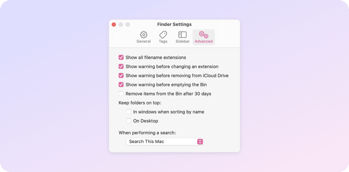 この隠されたクリーンアップ設定は、Finderの設定にあります。確認すると、ビン内のファイルは30日後に自動的に消えます。努力はゼロで、毎回貴重なスペースを取り戻します。