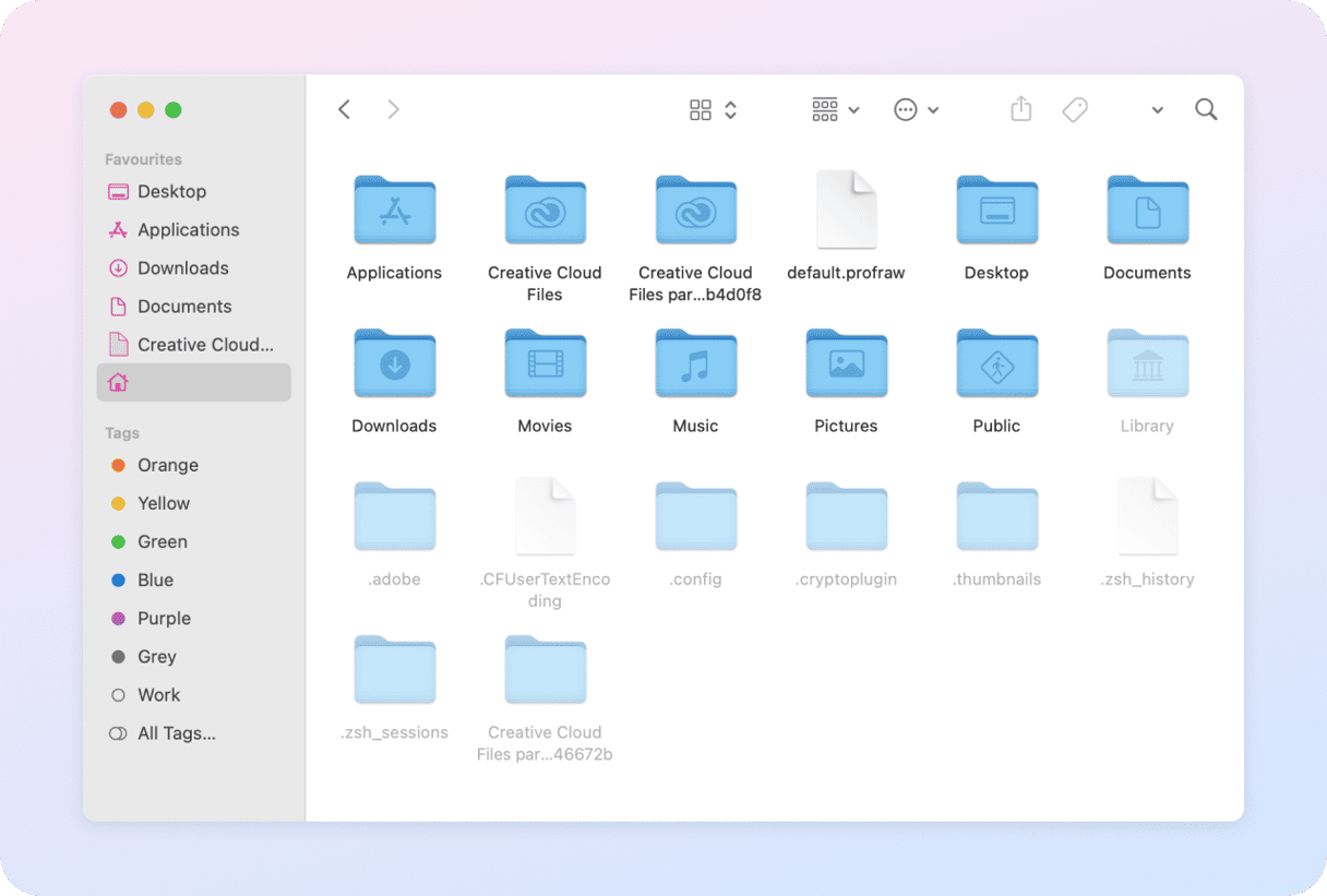 Macのユーザー名フォルダーをチェックしたことがありますか?あなたが押さえつけたらShift +コマンド +(。期間)通常は隠されているグレー化されたシステムフォルダーが表示されます。これらのフォルダーを隠すには、キーの同じ組み合わせを押します。