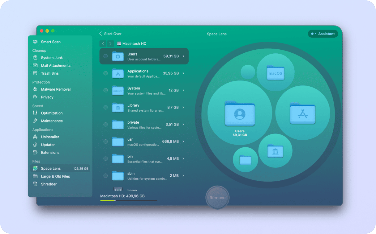 簡単な調査のために、CleanMymacの無料バージョンをお試しください。このアプリは、ドライブのインタラクティブなマップを作成します。これはFinderとは大きく異なります。 Mac全体で最大のスペースワスターと長い間失われたフォルダーを見ることができます。