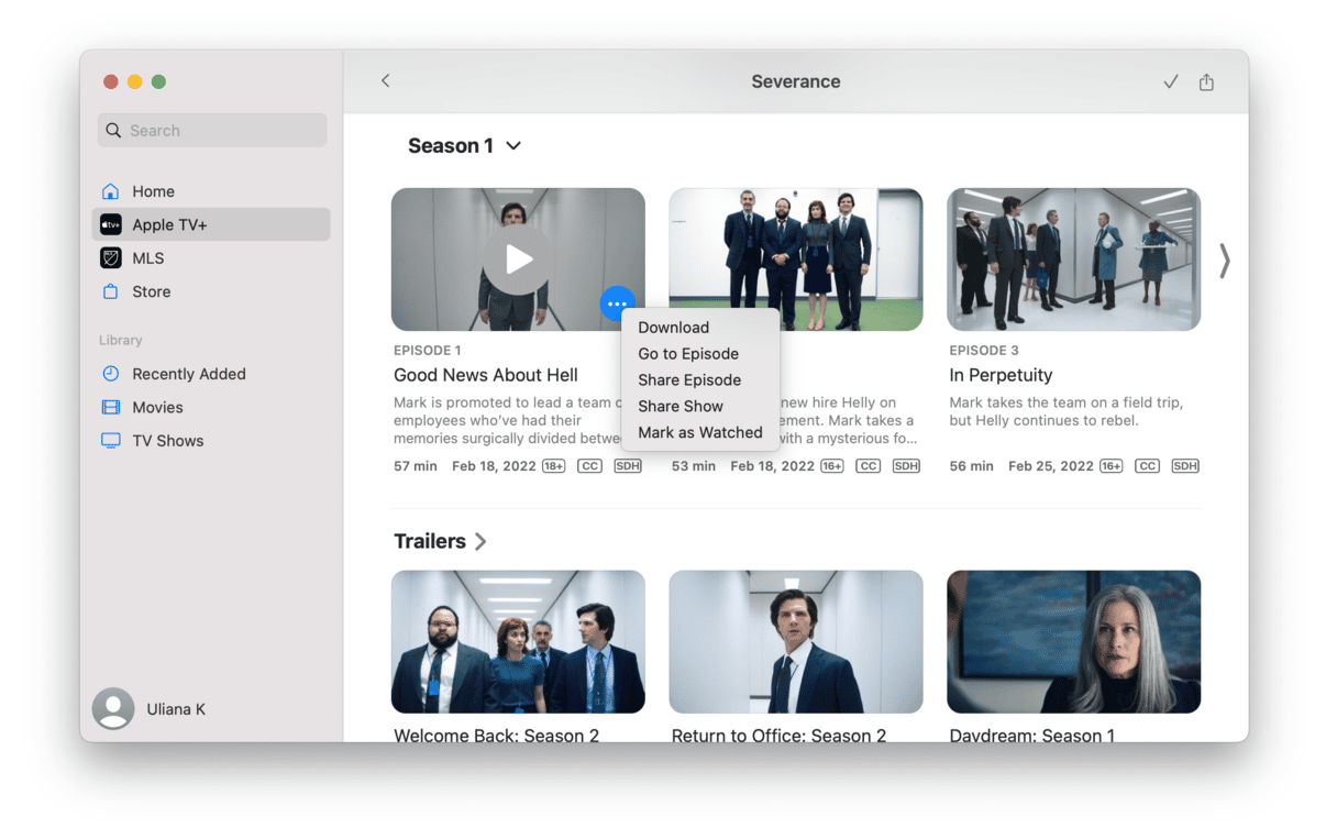 したがって、ご覧のとおり、Appleのテレビ番組や映画をダウンロードするのは非常に簡単です。お気に入りの映画やショーをすべてダウンロードしている間は、新しいエピソードのためにいくつかのスペースを解放するために見たものを削除することを忘れないでください。 Ellipsisボタンをクリックして[ダウンロードを削除]を選択するか、CleanMymacをクリーンアップでお手伝いさせます。読んでくれてありがとう、そして幸せな視聴!