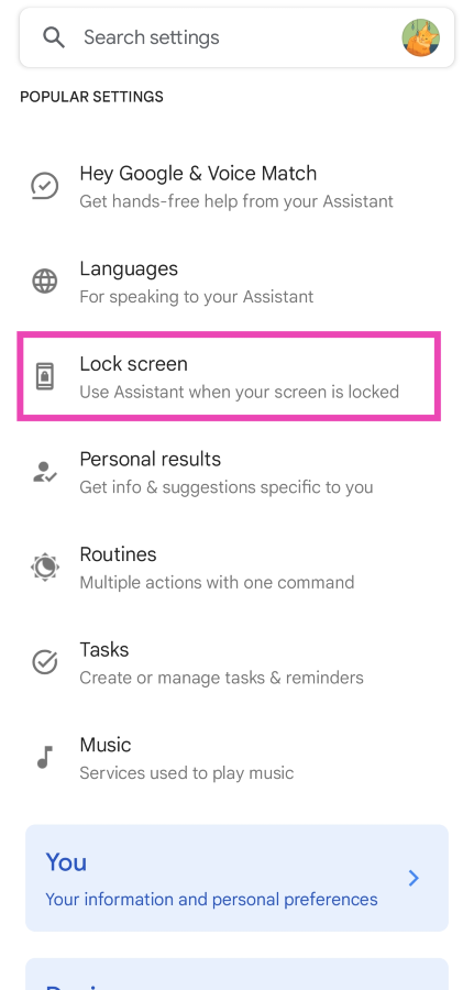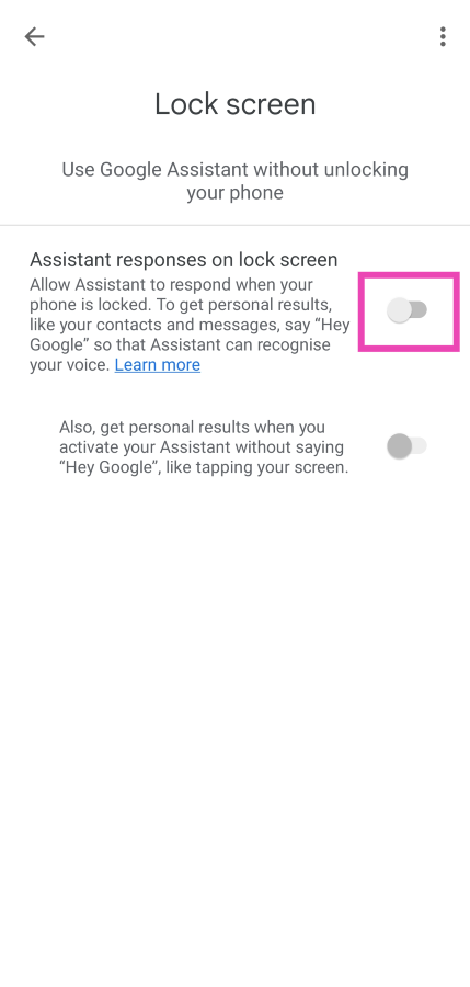 ステップ6:のトグルスイッチをオフにしますロック画面のアシスタント応答。