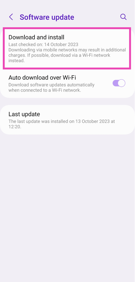 ステップ3:タップしますダウンロードしてインストールします。スマートフォンは、新しい更新をチェックします。