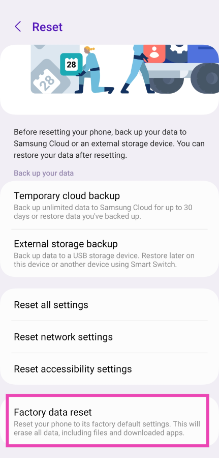 問題が厳密にソフトウェア関連である場合、それを修正するための最後の溝の尺度としてデバイスの工場出荷時リセットを実行できます。携帯電話の完全なリセットが永久に消去されるため、すべての個人データをバックアップしたことを確認してください。