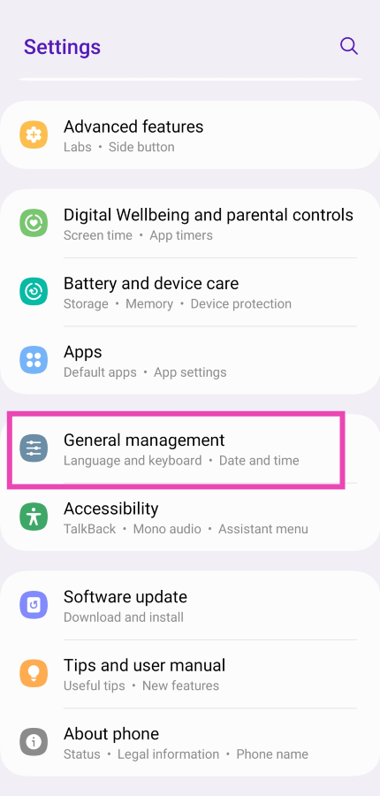 ステップ1:行きます設定、下にスクロールして選択します一般的な管理。