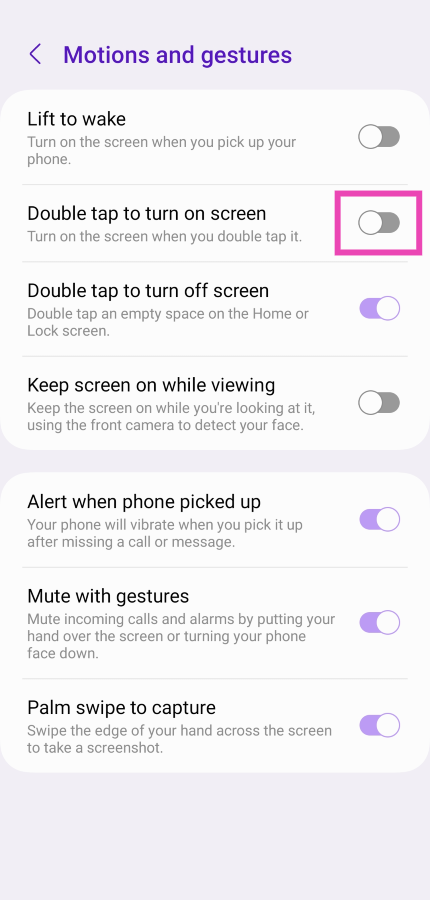 ステップ3:のトグルスイッチをオフにしますドゥーブタップして画面をオンにします。