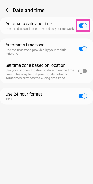 ステップ3:トグルスイッチをオンにします自動日付と時刻。