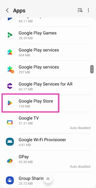 ステップ2:選択しますGoogle Playサービス。