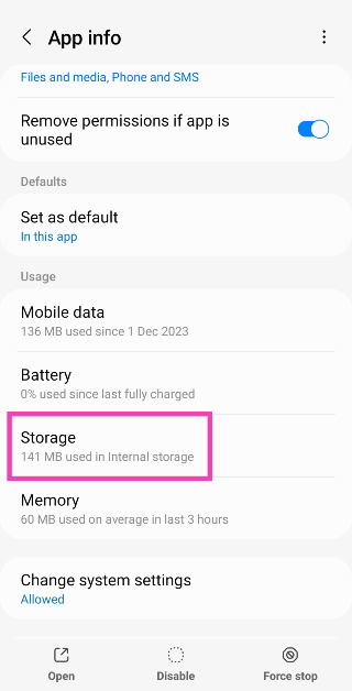 ステップ3:タップしますストレージの使用。