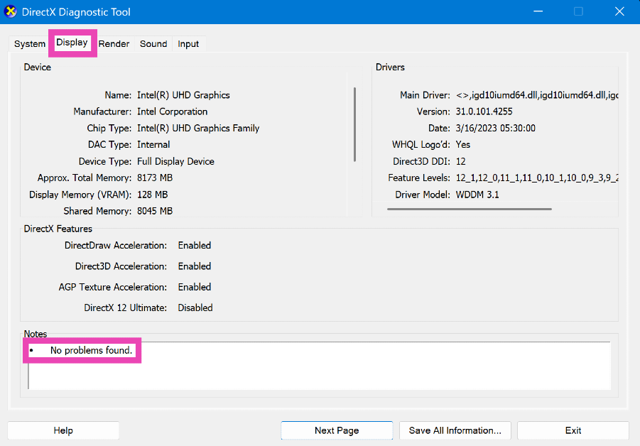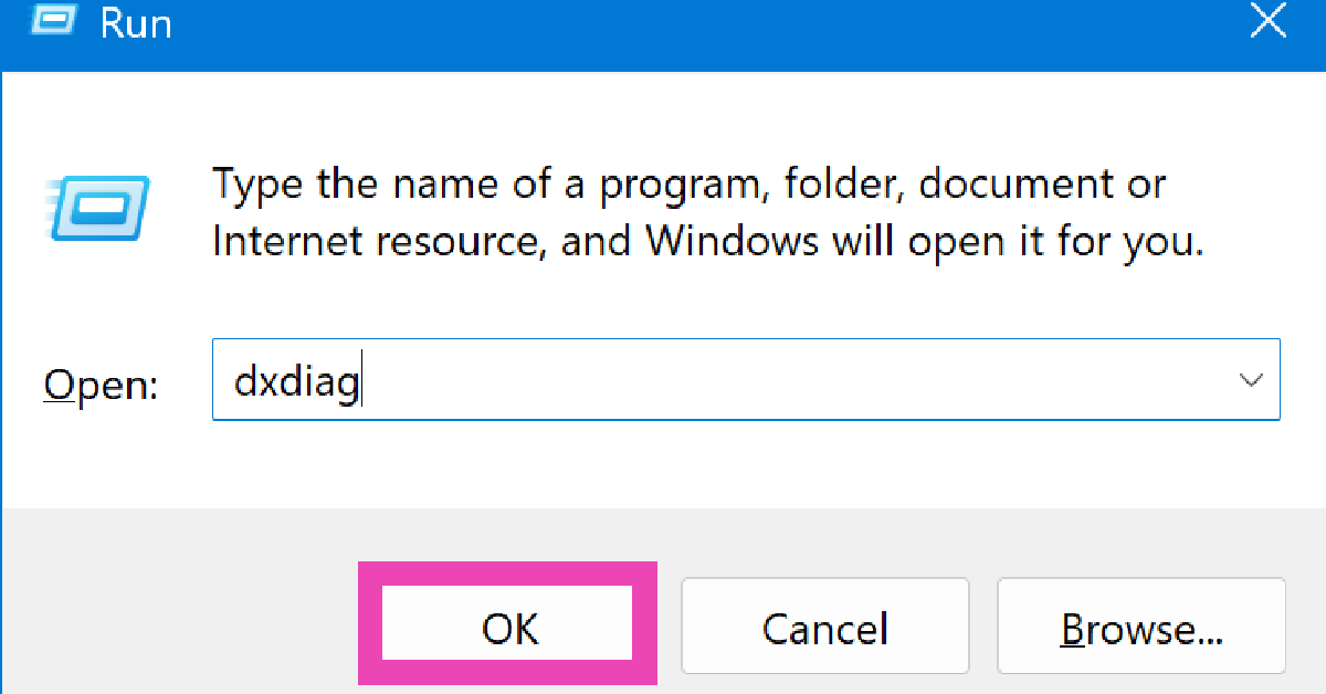 プレスWindows + r、DXDIAGと入力し、Enterを押してDirectX診断テストを実行します。